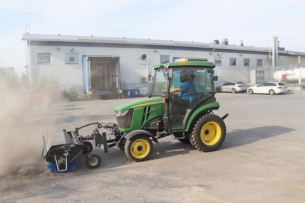John Deere 2036R -kiinteistötraktori on ketterä kiinteistönhuoltaja – työlaitteita voidaan kiinnittää eteen, alle ja taakse