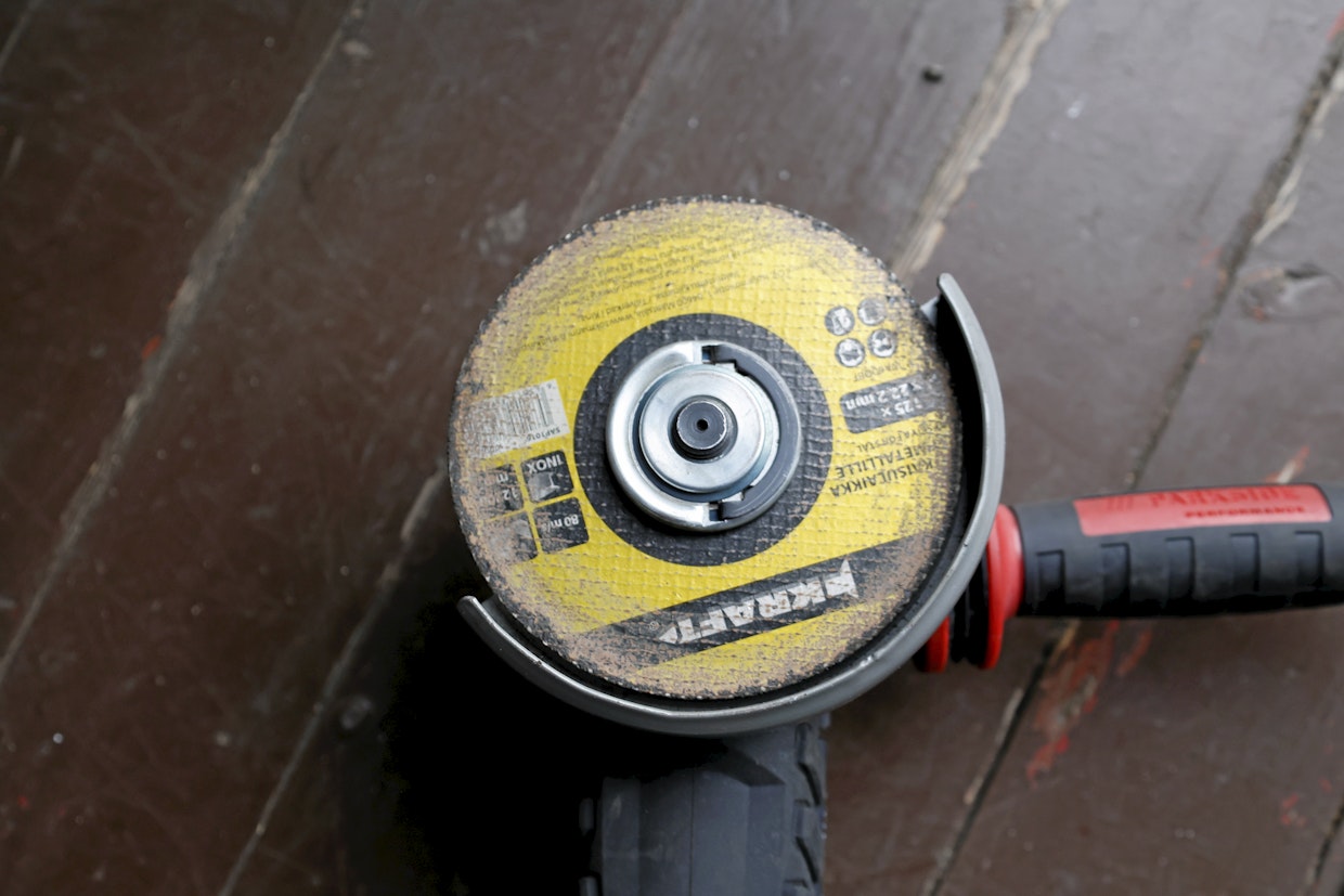 Kulmahiomakoneen laikkakoko on 125 mm. Laikan pyörimisnopeudeksi ilmoitetaan 12 200 rpm, mutta mittauksissa se vaikutti olevan luvattua pienempi. Kuva: Arto Turpeinen