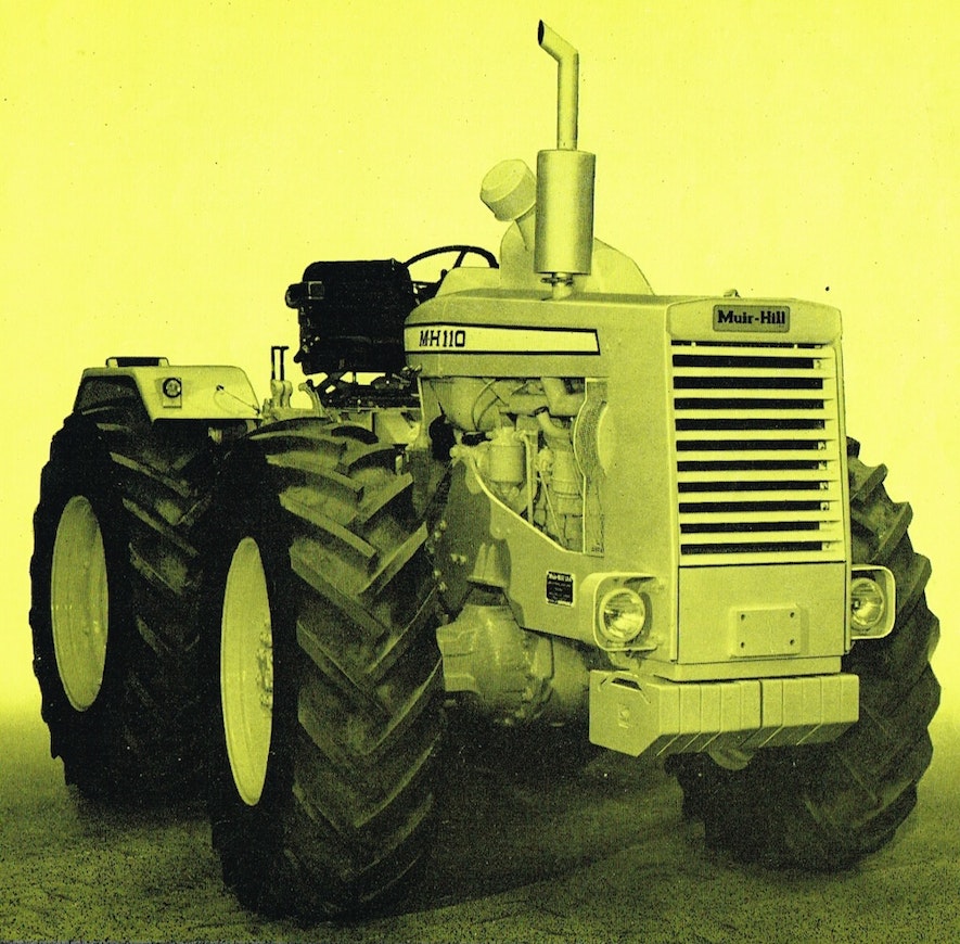 Vuoden 1966 lopussa markkinoille tulleessa traktorissa oli Ford 5000:n voimansiirto, neljä yhtä suurta pyörää ja 101-hevosvoimainen Ford 2704 kuutoskone. Kilpailevista Countysta ja Roadlessista poiketen Muir-Hillin pellit oli muotoiltu kokonaan omannäköisekseen ja väri oli teollisuuskeltainen. Hydraulisesti kytkettävällä hammaslukolla ja jarruilla varustettu etuakseli oli Muir-Hillin omaa tuotantoa. Akseliväli oli vain 190 cm.
