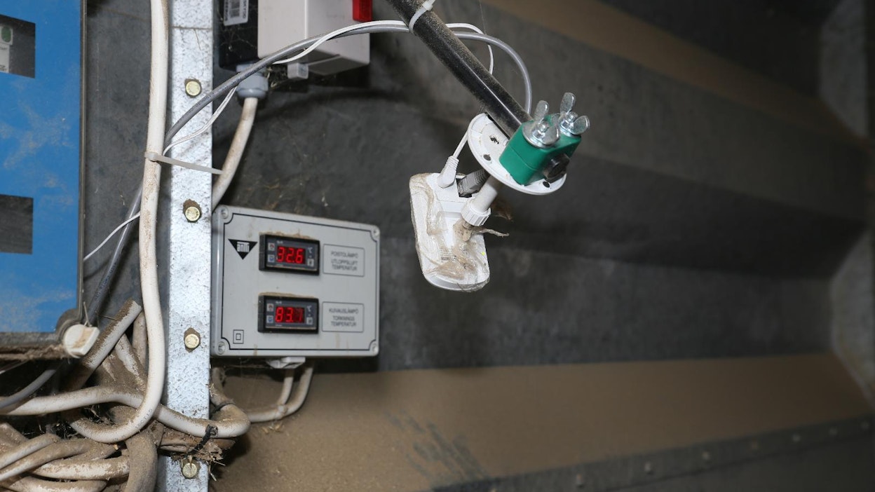 Laihialainen viljatilallinen Aki Västi teki edullisen valvontalaitteen kuivuriinsa.Langattomassa verkossa toimiva kamera kuvaa kuivurin lämpötilanäyttöä ja lähettää kuvaa tuvassa olevalle koneelle. Valvontasysteemin olisi varmasti saanut kuivurin valmistajaltakin, mutta tuskinpa sentään näin edullisesti. Aki pani kameran päälle vielä kirkkaan muovin, jolloin pölyjen pois pyyhkäiseminen on helpompaa kuin syvemmällä olevasta kameran linssistä.