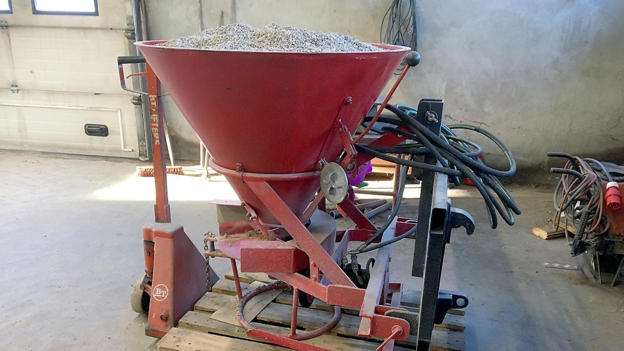 Kurt Häggman Komossasta on tehnyt omien sanojensa mukaan köyhän miehen hiekoittimen vanhasta keskipakolevittimestä.Hydraulimoottori pyörittää levityslautasta ja pellistä tehdyt ohjurit rajoittavat levitysleveyttä. Kun levitin on etukuormaimessa kiinni, niin levitystyössä pääsee ajamaan hiekoitetulla tiellä.