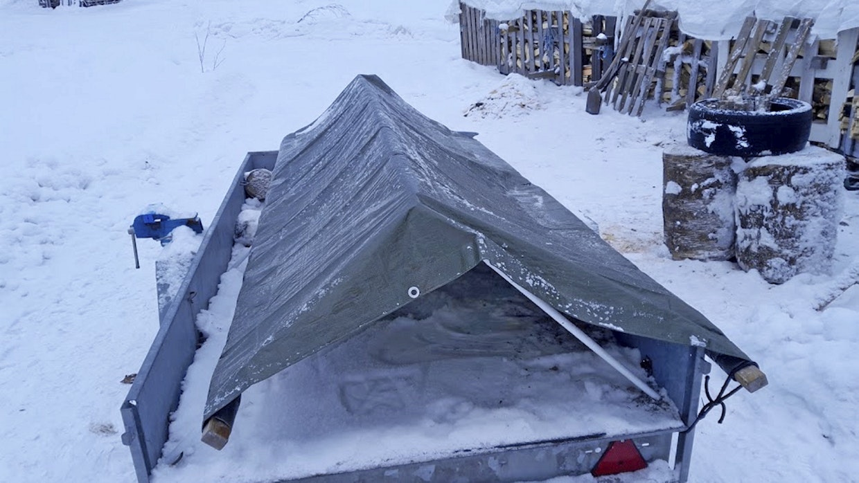 Usein pihassa seisova kärry tarvitsisi pressun kuorma ja lavan suojaksi. Tässä pikaidea aiheesta.Janne Sarajärvelle jäi pihakatoksesta ylimääräinen kehikko. Pienen pohdinnan ja askartelun jälkeen siitä syntyi teline pressulle peräkärryyn. Työkalut pysyvät nyt suojassa, ja tavarat on helppo työntää suojaan koholla olevan pressun alle työpäivän jälkeen. Lava pysyy myös paremmin suojassa lumelta ja sateelta.