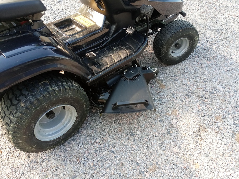 Yksinkertainen muovikahva helpottaa heittosuojan nostamista kuljettajan paikalta ajettaessa esteen ohitse. Kuva: Jarkko SuominenJarkko Suominen asensi ajoleikkurin sivulla olevaan heittosuojaan muovisen kahvan. Heittosuojaa joutuu ruohonleikkuun yhteydessä usein nostamaan istutusten kohdalla ja ahtaissa paikoissa leikattaessa. Heittosuojaa on turvallista ja siistiä nostaa kahvasta esteitä sivuuttaessa ja kahvan avulla heittosuojasta saa hyvän otteen.