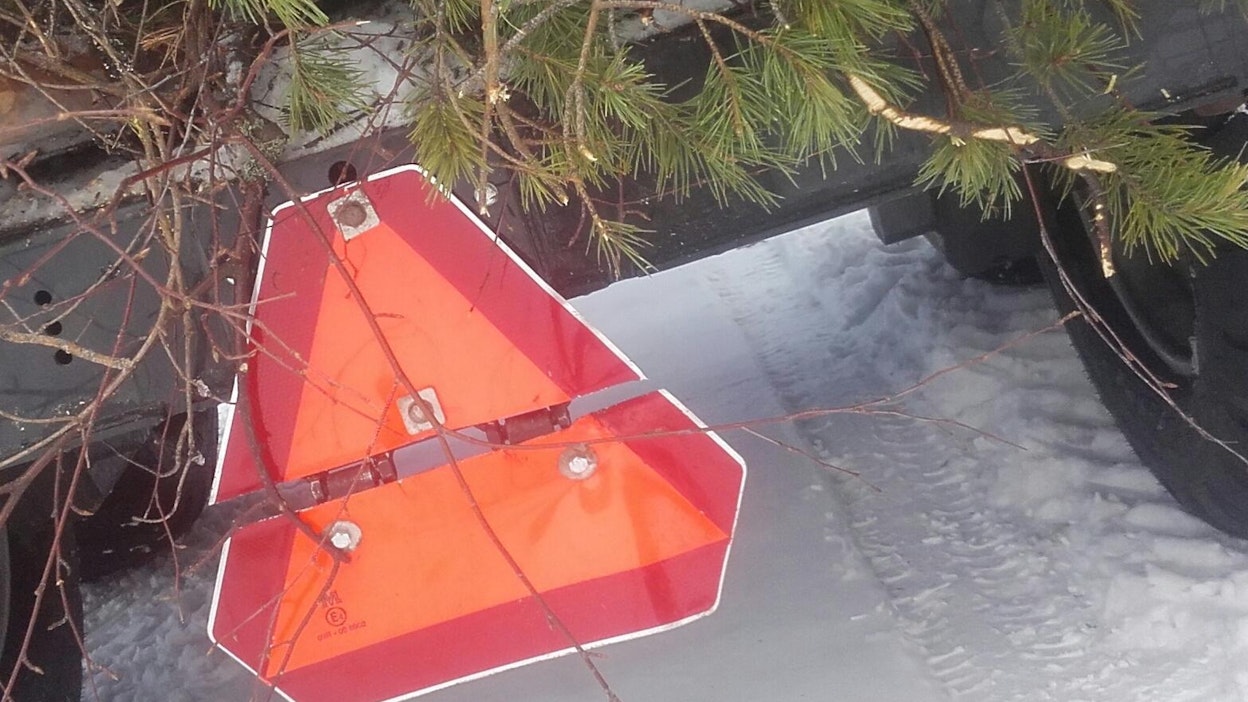 Jani Patamäki Kerimäeltä huomasi, että metsäkärryn perässä oleva hitaan ajoneuvon kolmio ei kestänyt ehjänä.Jani katkaisi kolmion kahteen osaan ja teki pulttia, putkenpätkää ja lattarautaa hyödyntämällä siitä saranoidun mallin. Nyt kolmio on kestänyt ehjänä, sillä alaosa väistää esteitä sekä eteenpäin ajettaessa että peruutettaessa.