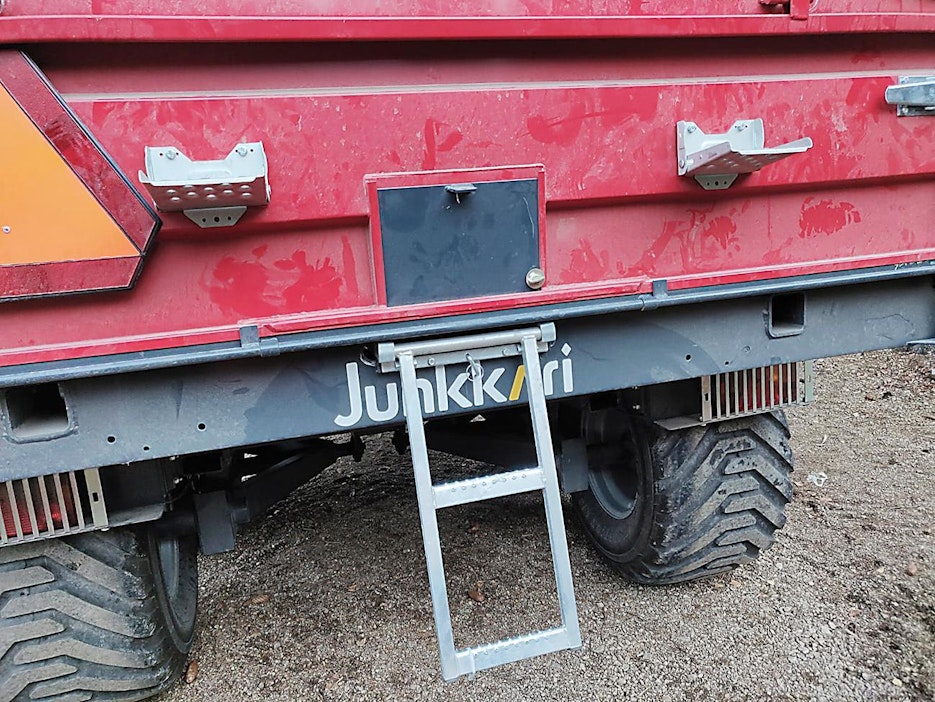 Traktorin perävaunut ovat nykyään niin korkeita, ettei niihin enää pääse kiipeämään ainakaan perän kautta.Kausalalainen Reijo Houni asensi perävaununsa lavan alle raskaan kaluston ulosvedettävät tikkaat sekä astinlaudat perälautaan. Tikkaat ja astinlaudat helpottavat työn tekoa, ja tekevät kärryyn nousemisen huomattavasti turvallisemmaksi.