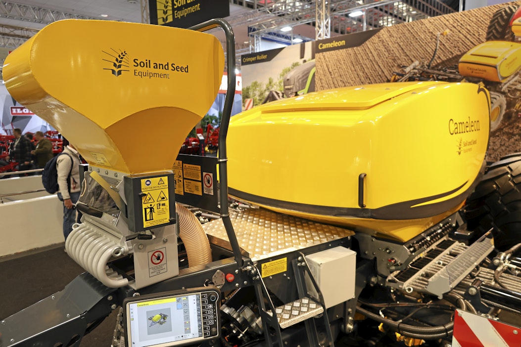 System Cameleon on saanut uuden ohjausjärjestelmän Isobusin myötä. Piensiemensäiliö on siirretty uudessa mallissa aivan eteen aisan päälle Siemensäiliö on nyt tilavuudeltaan 200 litraa. Kuva: Seppo PenttiLue artikkelin tiivistelmäAgritechnica 2025:ssa esitelty System Cameleon sai Isobus-ohjauksen ja hydraulisen vantaan painatuksen. Uudistukset tehostavat täsmäviljelyä ja helpottavat kuljetusta. Vetoaisaa pidennettiin ja piensiemenlaitteen tilavuutta kasvatettiin.