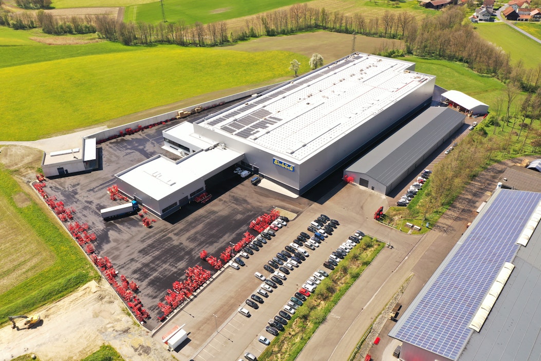 Uuden tehtaan rakentaminen aloitettiin kaksi vuotta sitten. Nyt uusi tehdas on käynnissä. Etualan siipi on koneiden lastausta varten. Toimitettavat koneet voidaan lastata katon alla. Kuva: EinböckEinböckin perheyritys on tehnyt historiansa mittavimman investoinnin, kun se on rakennuttanut uuden tuotantotilan. Uudessa on hallissa on komponenttivarasto, maalaamo ja kokoonpano. Einböckilla on yli 220 työntekijää sen tehtaan pinta-ala on yli 70 000 m²:n. Tästä noin 30000 m2 on sisätiloja.
