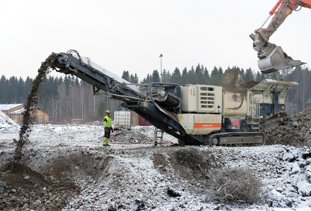 ”Kyllä täytyy sanoa, että Urban-malli on todella hiljainen. Murskauksen ääni ei nyt ylitä kaivinkoneen moottorista syntyvää melua, ja koneen vieressä voi puhua ääntä korottamatta. Korkeapainesuihkutus murskaimen kitaan ja purkukuljettimelle estää pölyämisen. Lisäetuna Lokotrackin magneettierotin kerää murskatusta aineksesta pois betoniraudat, jolloin puhdasta, murskattua betonia voidaan käyttää usein vaikka paikan päällä maantäyttöön,” Blinnikka lisää.