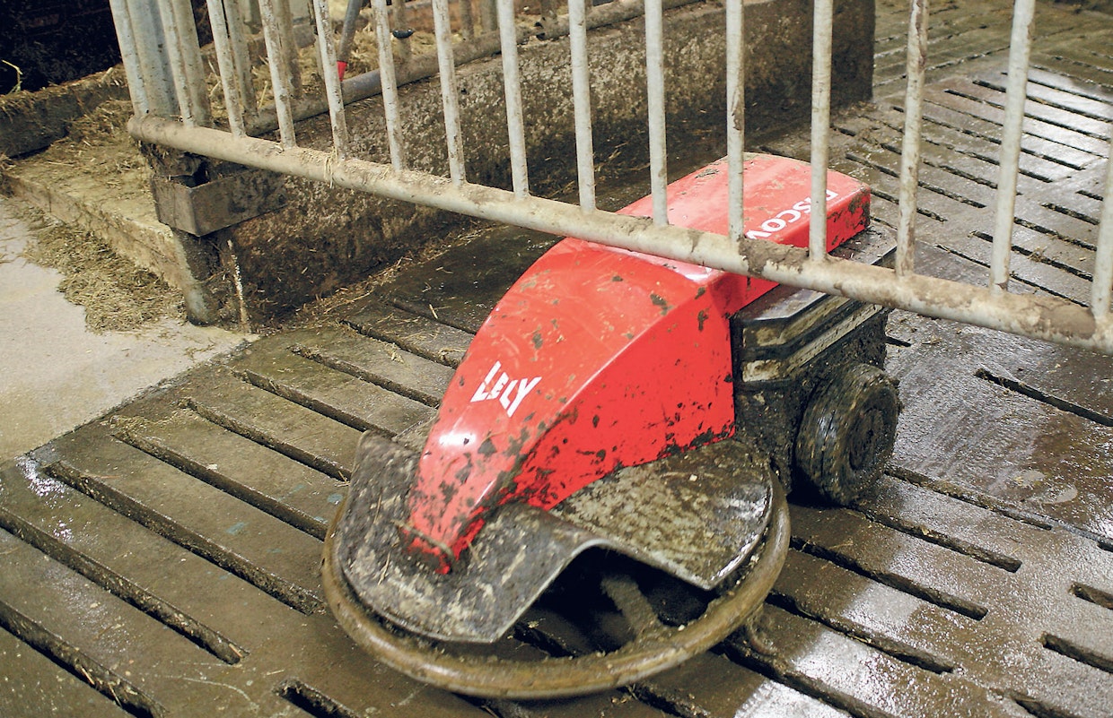 Käytäväpalkkeja pitää puhtaana Astronaut Discovery -siivousrobotti. Se on sopeutunut siivoamaan myös pyöreän navetan käytäviä.