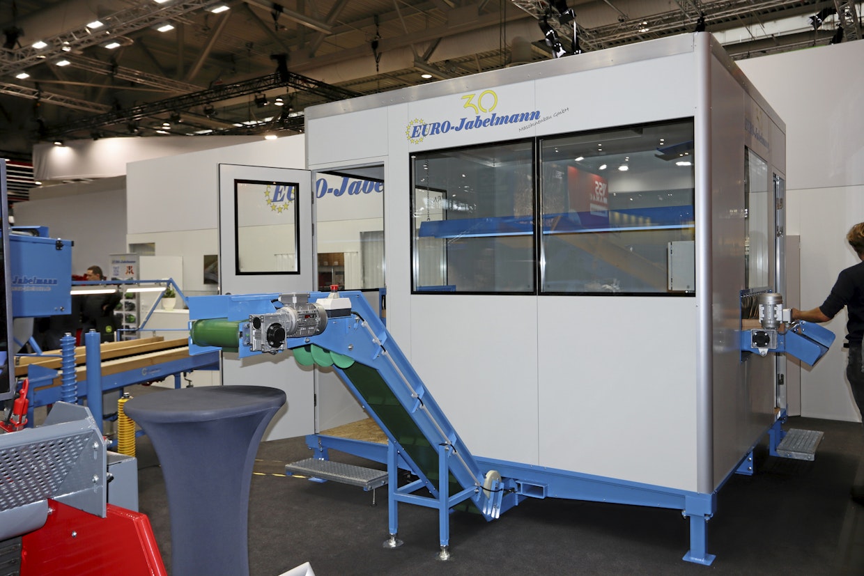 Perunan lajittelupöytä oli Jabelmanin osastolla sijoitettu erilliseen ja eristettyyn tilaan, jonka ilma voidaan suodattaa perunavarastossa olevasta pölystä ja nostaa lämpötila varaston noin 4 °C korkeammaksi. Lajittelu sujuu tarkemmin, kun työskentelyn olosuhteet ovat hyvät. Kuva: Uolevi Oristo