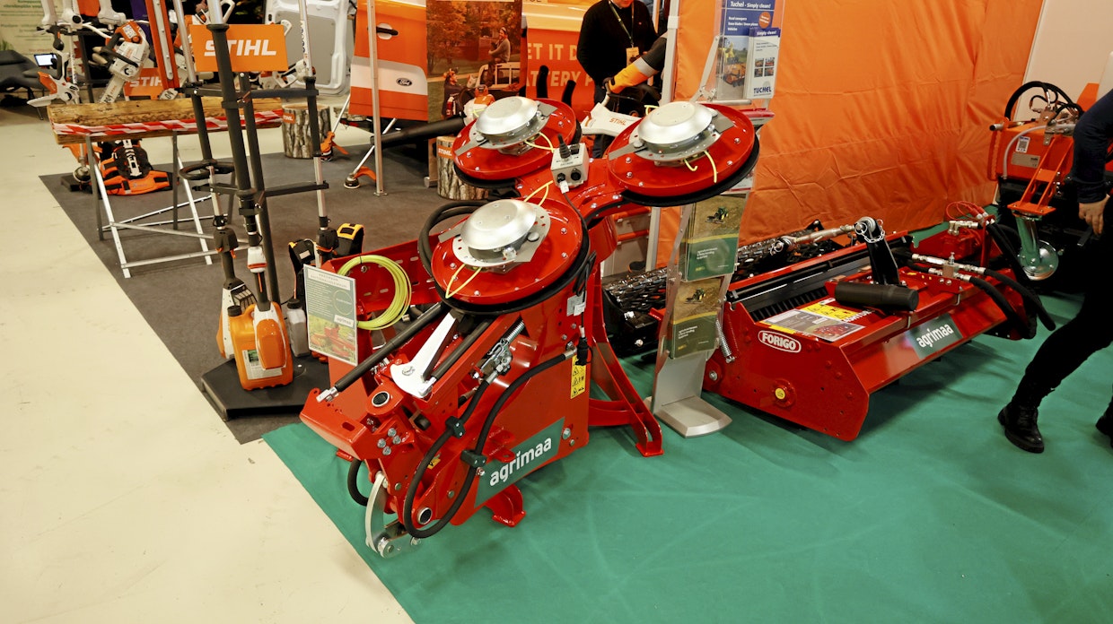 Agrimaa tuo maahan Kneillmannin kaiteenalusleikkuria, joka soveltuu myös pylväiden ja pensaiden ympäristön niittämiseen. Laitteessa on yhdistetty terä ja siimat. Työleveys on 95 cm. Hydraulisesti taitettuna leveys on 1.3 metriä. Leikkuuyksikkö on varustettu jousituksella. Kaltevuus on säädettävissä -30 – +45 asteen välillä. Kuva: Arto Turpeinen