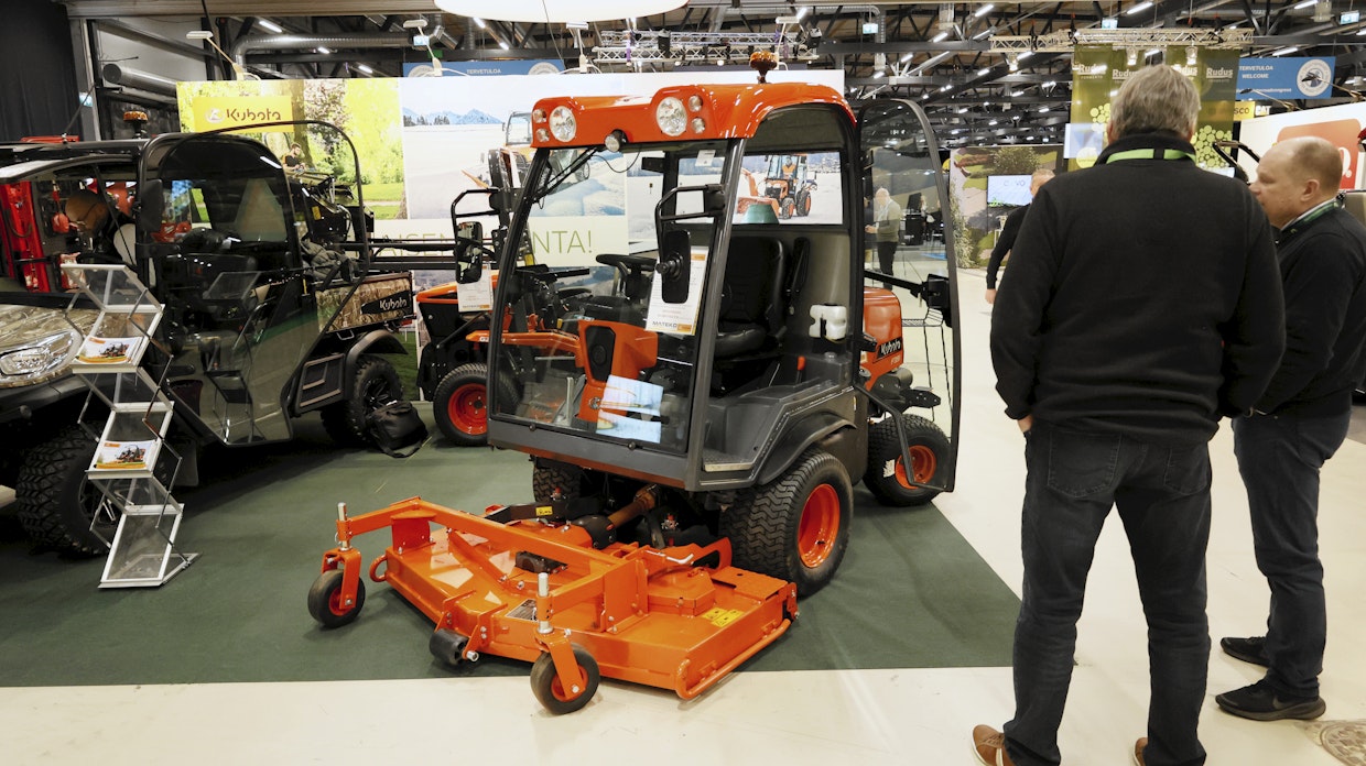 Kubota F391-malli on maahantuojalle tärkeä Suomessa. Leikkuripää sää voimansa PTO-akselilta, jonka myötä laitetta voi hyödyntää myös talvella yhdistämällä koneeseen esim. lumilingon tai hiekanlevittimen. Moottori on 37,4 hv Kubota. Nelivetoisen hydrostaattisen voimansiirron siirtonopeus on 20 km/h. Leikkuupöydän leveys on 152 cm tai 183 cm, Leikkuukorkeus on 25–129 mm. Kubotan saa myös ilman ohjaamoa. Kuva: Arto Turpeinen