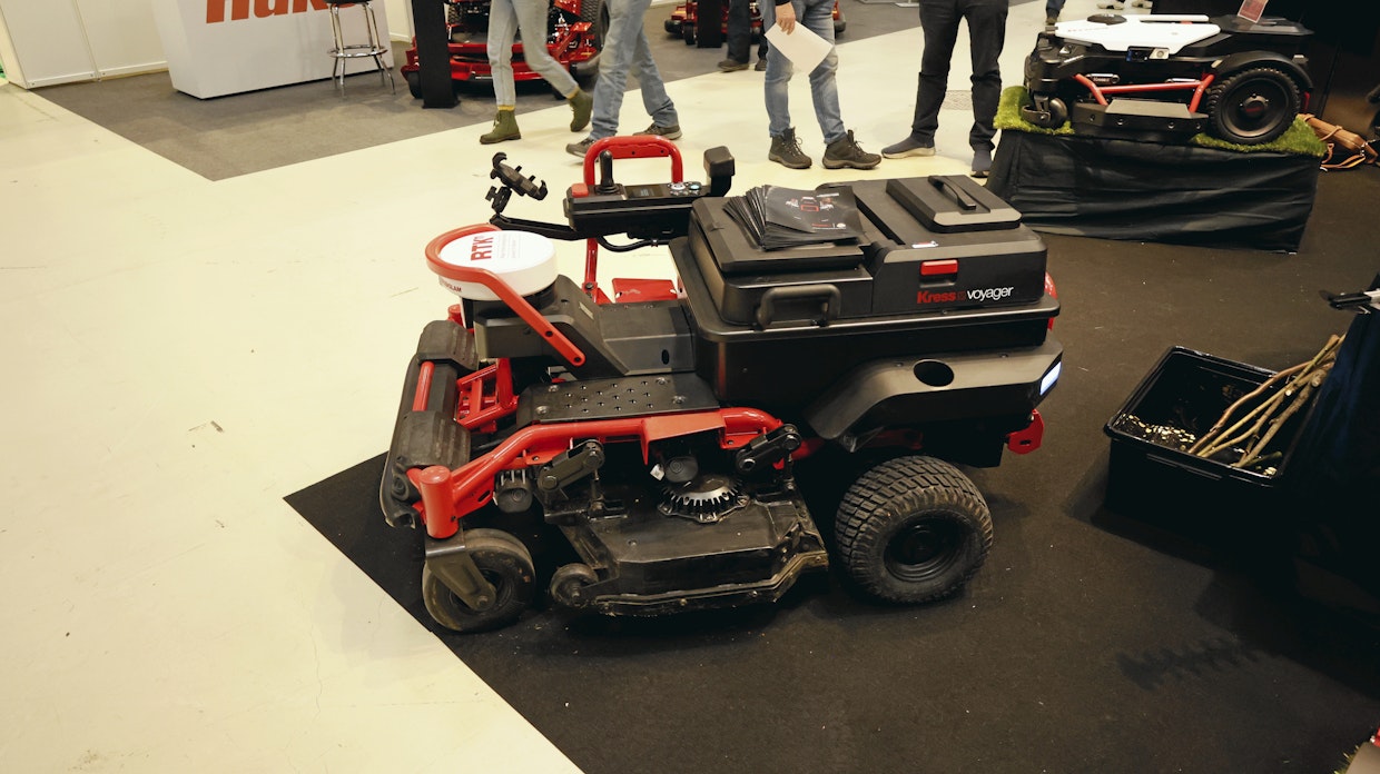 Kress Voyager KR800E on kauden uutuuksia. Laitetta voi käyttää joko robottina tai sauvaohjattuna manuaalisesti. Leikkuuleveys on 102 cm. Akun kapasiteetiksi ilmoitetaan 10 kWh, jolla pystytään saavuttamaan kahdeksassa tunnissa 28,000 m² leikkuuala. Leikkuukorkeus on 40–125 mm. Työaikaa voi pidentää liittämällä minkä tahansa Kress Commercial -akun. Kuva: Arto Turpeinen
