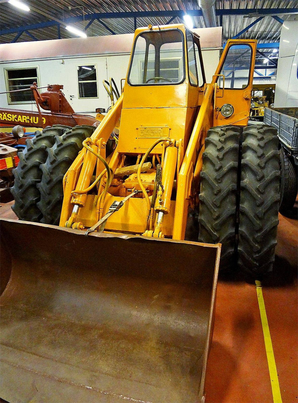 Lokomo Teräsmies JT22 ajettu hallin seinän viereen. Se on viimeksi ollut vuonna 2008 pidetyssä TVH - valtion tiet-näyttelyssä. Kone on valmistettu vuonna 1954. Kuva: Jussi Laukkanen