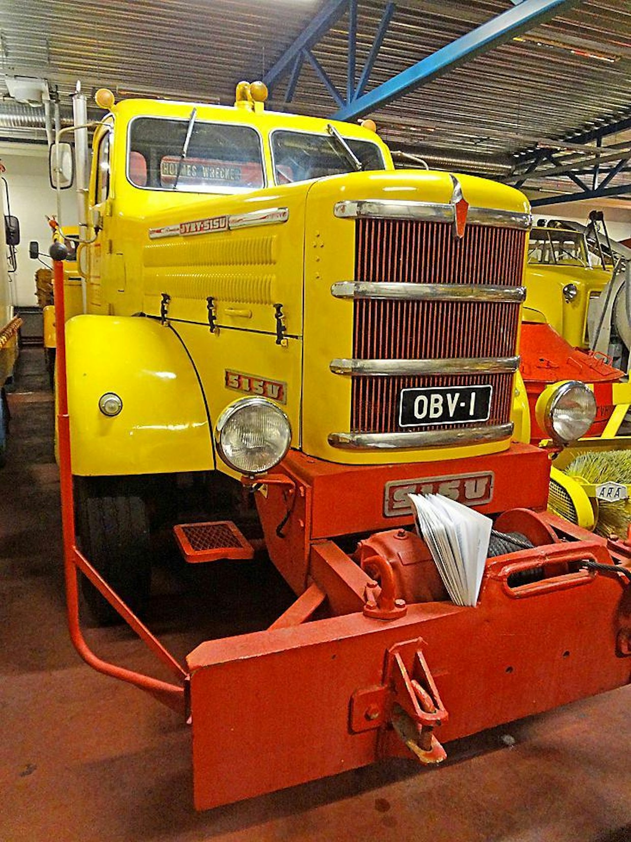 Suurin osa TVH:n kuorma-autoista on ollut Sisuja ja Vanajia ja se näkyy tietysti myös museon kokoelmassa. Tämä jokapyörävetoinen Jyry-Sisu K-40 BP/415 on vuodelta 1962 ja on toiminut hinurina. Kuva: Jussi Laukkanen