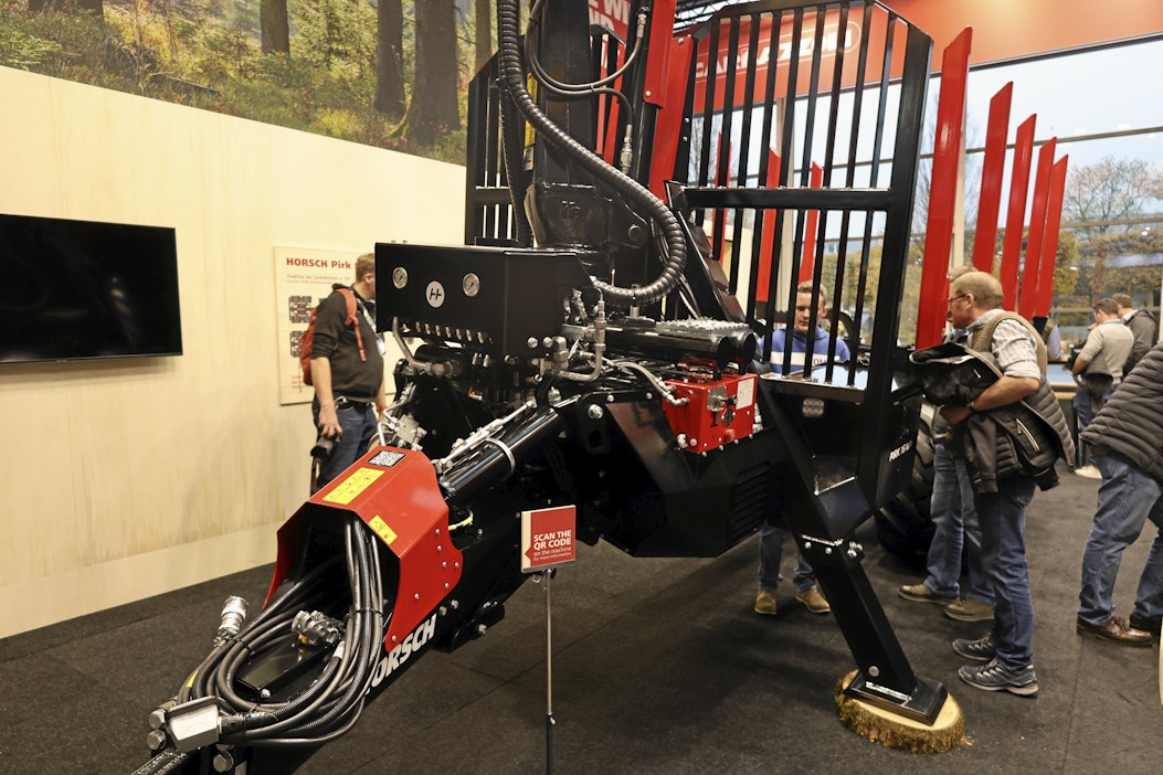 PIRK 20 MP -metsäperävaunu oli esillä näyttelyssä. Traktoriin kiinnitettävä letkunippu on melkoinen. Nippu on hyvin suojattu, jolloin tiukassakaan käännöksessä letkut ja johdot eivät vaurioidu. Kuva: Seppo PenttiHorsch esitteli PIRK 20 MP -metsäperävaunun ensimmäistä kertaa Agritechnicassa. Vaunu oli esillä jo syksyllä järjestetyssä lehdistötilaisuudessa Gerassa ja sitä ennen myös lavallisena 20 TM -versiona DLG-Waldtage 2025 -näyttelyssä. Vaunu on suunniteltu ja tarkoitettu perinteisen metsäkäytön lisäksi myös viherurakointiin. Tarjolla on myös kevyempi PIRK 16 MP, 16 tonnin kokonaismassalla.