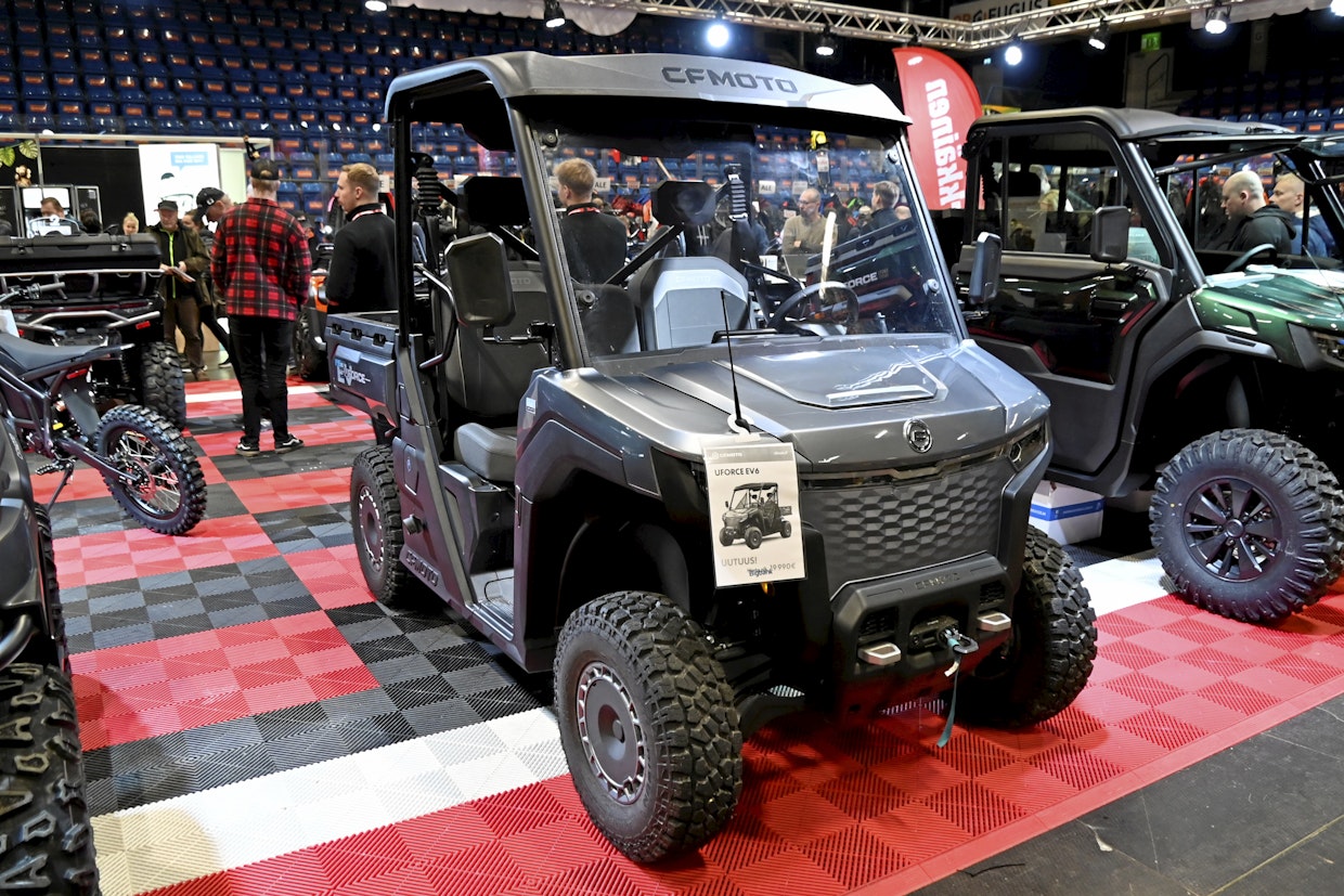 CF-Moto yllätti esittelemällä uuden U6-sähkömönkijän, jossa on 35 kW:n moottori, 15,2 kWh:n akku ja valmistajan mukaan maksimitoimintamatka yhdellä latauksella on 110 km. Kuva: Seppo Nykänen