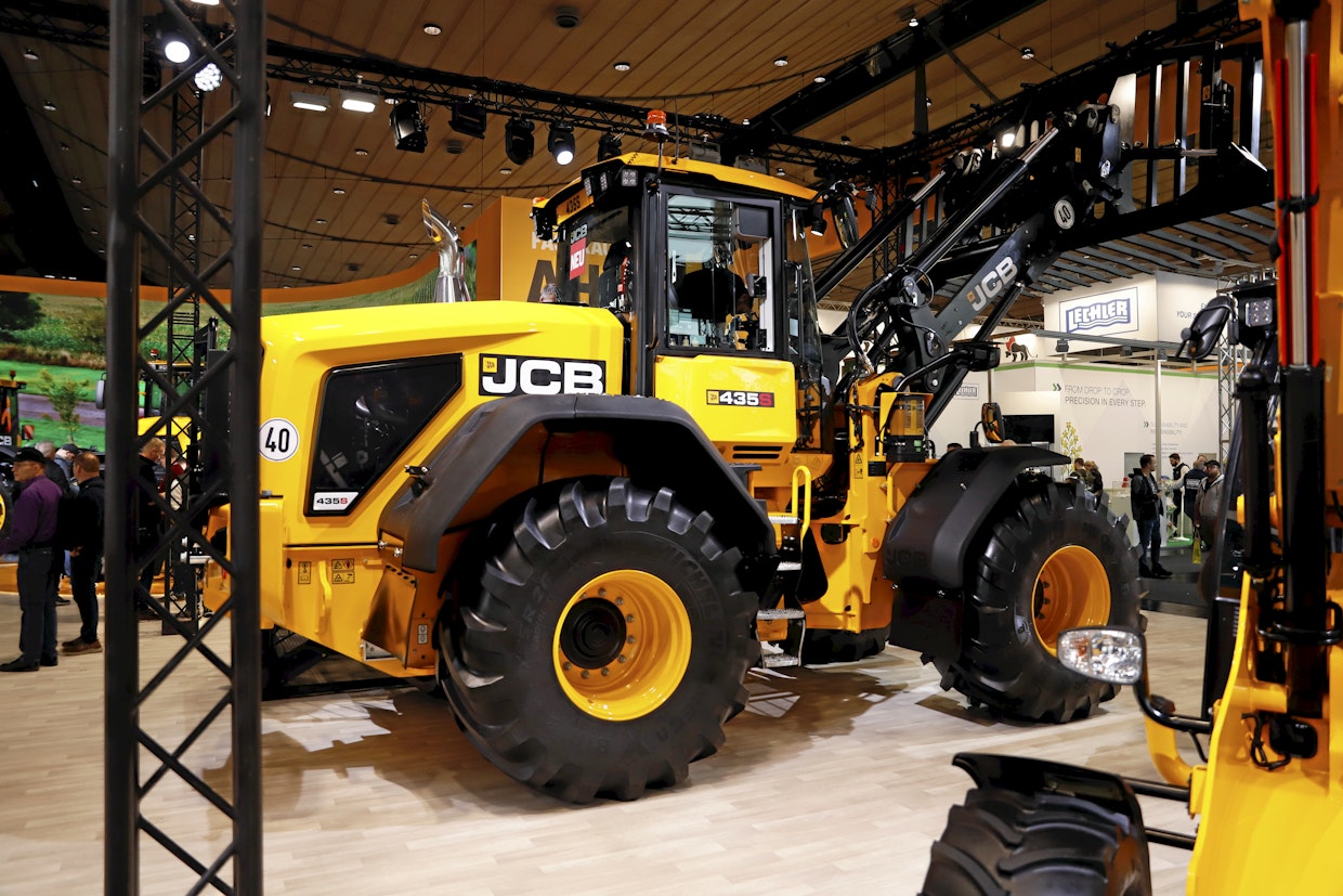 JCB on uudistanut maatalouspyöräkuormaajaansa. Moottorina on 6,7-litrainen Cummins, 282 hv / 210 kW, jossa vääntöä on 1 200 Nm. Työpaino on 15 500 kg ja huippunopeus 48 km/h. Kaatokuorma täydessä käännössä on 9 142 kg. Voimansiirrossa on 6-vaihteinen powershift sekä lukittava momentinmuunnin. Ratkaisulla tavoitellaan parempaa voimansiirron hyötysuhdetta. Kuva: Eemeli Linna