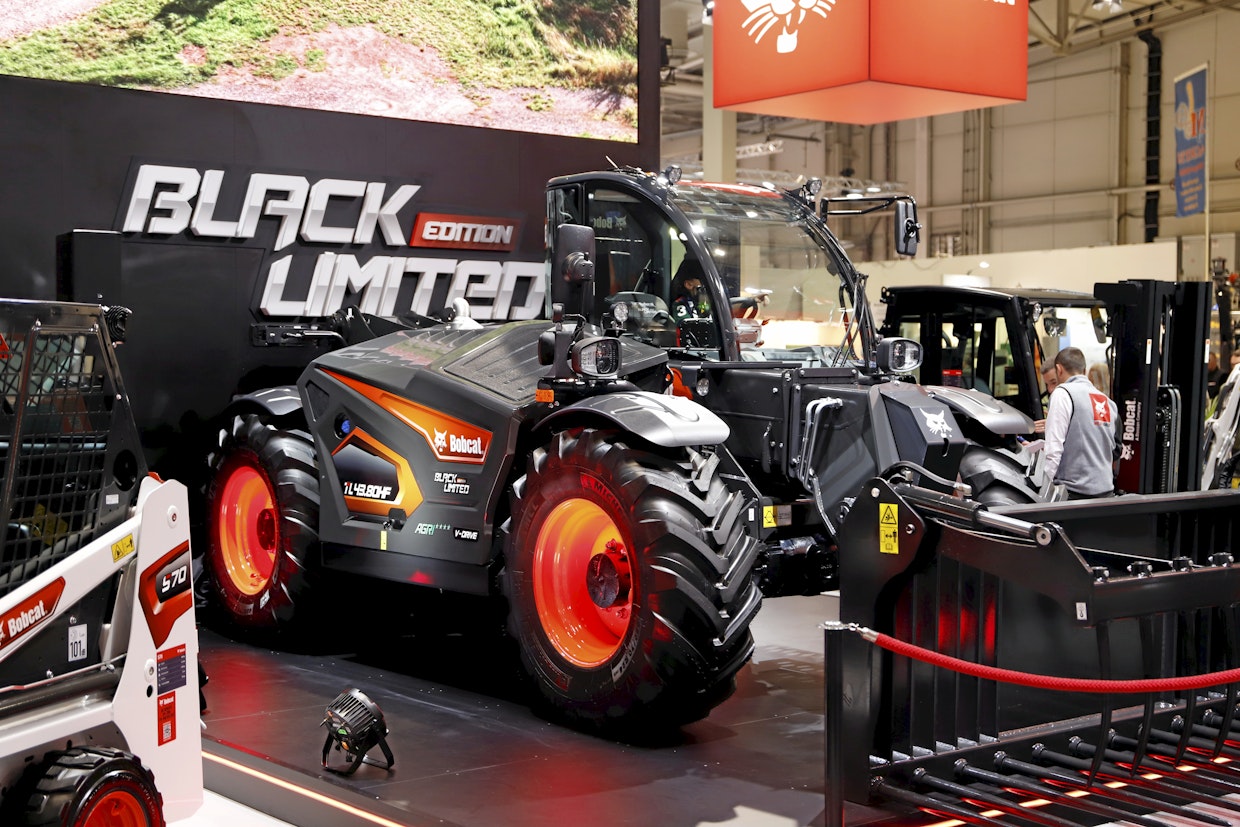 Bobcatin Black Edition maatalouden juhlamallia valmistetaan vain 50 kappaletta. Uusi V-drive-vaihteisto on hydrostaattinen ilman aluevaihteita 40 km/h saakka. Varustelutasoon kuuluu muun muassa start/stop-etäohjaus ja -automatiikka, vakionopeussäädin, suurimman nopeuden rajoitin, ECO-toiminto sekä nippu mukavuusvarusteita ohjaamoon. Kuva: Eemeli Linna