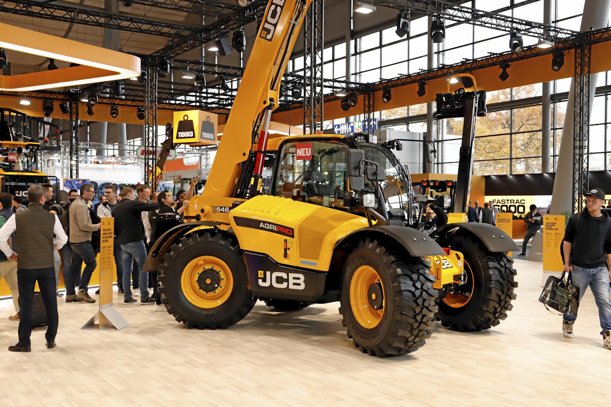 Teleskooppia esitteli myös JCB pienkuormainmallissaan TM110, joka nostaa 1 100 kg. Suurin nostokorkeus on 3,5 m. Perkins-moottorin teho on 48 hv ja huippunopeus 30 km/h. Eturunko oli kokonaan uutta suunnittelua. Kuva: Eemeli LinnaBrock paljastaa, että sähkömallissa on suunnitelmissa rakentaa sähköliitäntä niin, että akkua voisi hyödyntää ulkoisesti, jopa 400 V kolmevaiheliitännän kautta. Kyseistä ratkaisua ei pienkuormainkategoriassa tullut tiettävästi muilla vastaan.